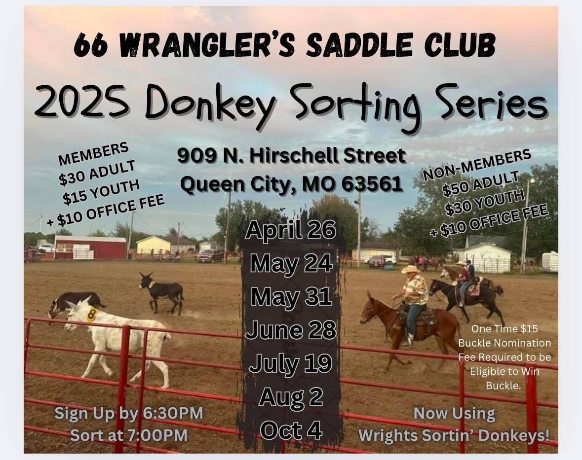 7:00 PM Donkey Sort with Wrights Sortin' Donkeys Entries will close at 6:30.Spectators Welcome! Cookshack will be open!